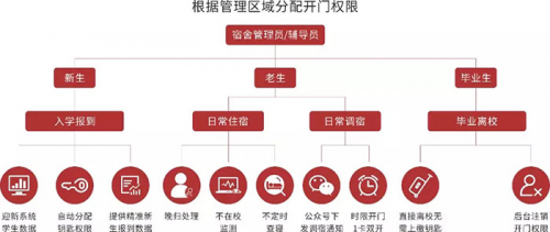 高校人员流动性大,管理人员无法掌控门锁。采用智能联网门锁之后,由于门锁都由后台统一控制,方便的不仅仅是学生,更多的是让管理者能够实时的了解到学生的动态,通过学生的刷卡数据,可以分析学生的归寝情况和有无异常发生。除此之外,在每年新生入校,老生离校的时候,不需要再一个个去收集钥匙或者去更换锁芯,只需要将授权名单从管理软件中解除,再新增授权名单即可。